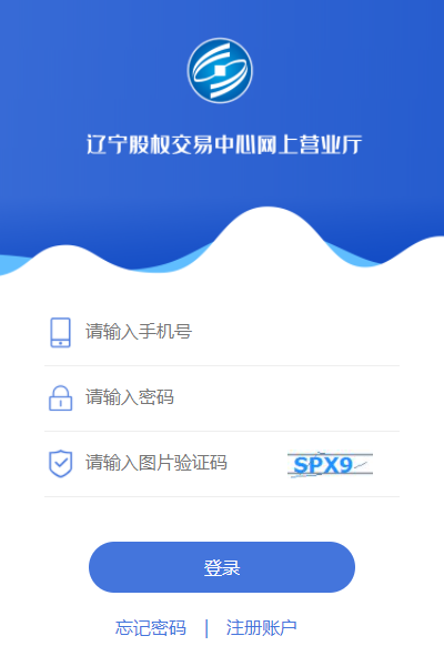 2、登录辽股交网上营业厅进行测评,如下图所示,填写企业账户密码和图片验证码后点击登录按钮,进入网上营业厅。