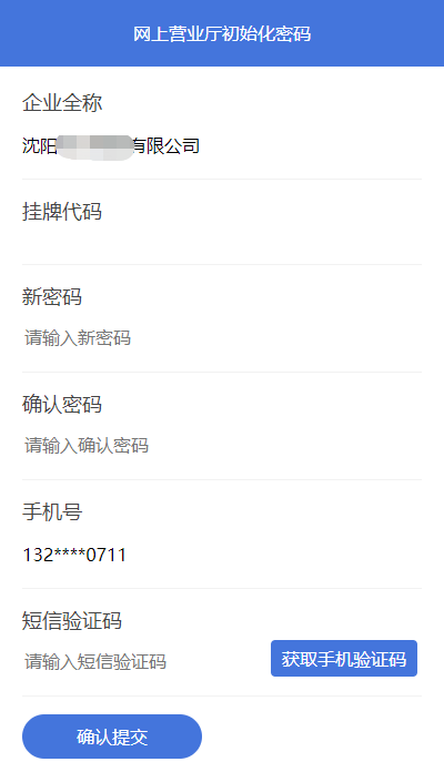 首次登录系统将要求您修改默认密码,如下图所示,修改后进入到营业厅首页