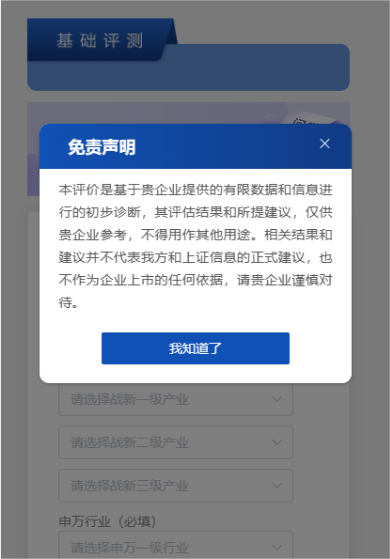 (一)使用企业账户登录后进行企业上市测评,无账号请点击上方 预约申请。